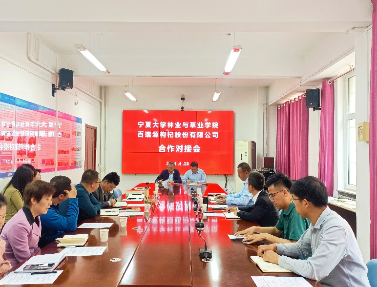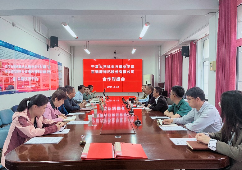 与百瑞源枸杞股份有限公司合作对接会在德晖楼103会议室举行。此次会议旨在通过双方的合作,共同推动枸杞产业的科研创新和人才培养,实现产学研的深度融合。百瑞源枸杞股份有限公司副总经理郝万亮、副总监胡涛、红寺堡基地经理马涛,以及时时彩