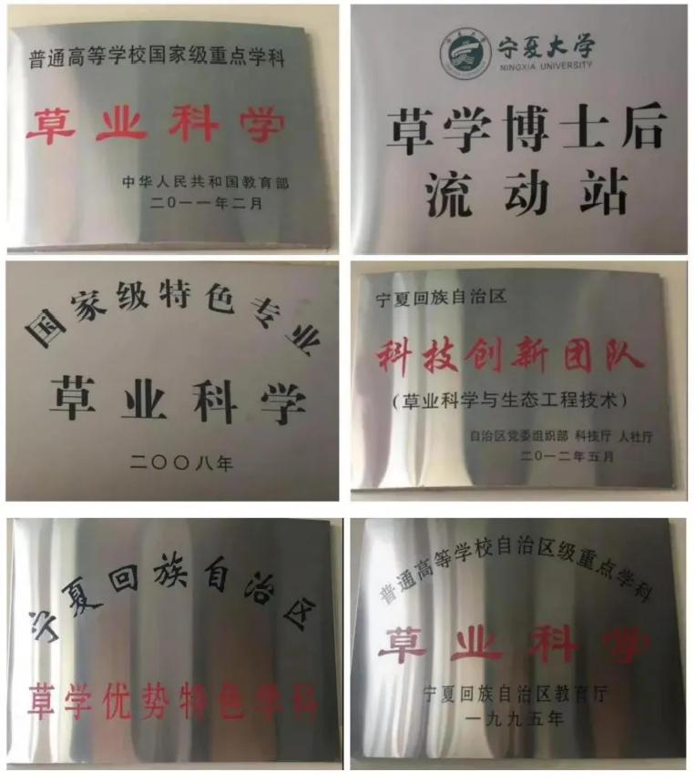 学院有草业科学、林学、林学专业(枸杞方向)和园林4个本科专业(专业方向)。其中,林学和草业科学(专业)起始于1958年,园林专业起始于1995年。草业科学专业为首批国家一流建设专业、国家特色专业和自治区优势特色专业,林学专业为传统特色骨干专业。草业科学为国家重点学科,草学为宁夏重点学科(优势特色学科)和自治区“双一流”重点建设学科,林学学科为传统骨干特色学科。建有草学一级博士、硕士授权点,在农艺与种业领域设有草业专业硕士;林学学科设有林业专业硕士学位授权点,建有草学博士后流动站。