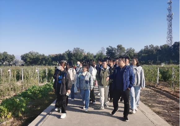 第二站,仁存渡护岸林场。到达林场后,林场工作人员向给同学们介绍了林场的种质资源情况、基础设施建设、杨树育种基地现况。随后带领同学们参观了黄河河岸防护林、杨树种质资源基地,带队教师也为同学们生动地讲解了林木育种等相关专业知识,让同学们在了解宁夏黄河河岸防护林建设情况的同时对自己所学的专业有了初步的感性认知。